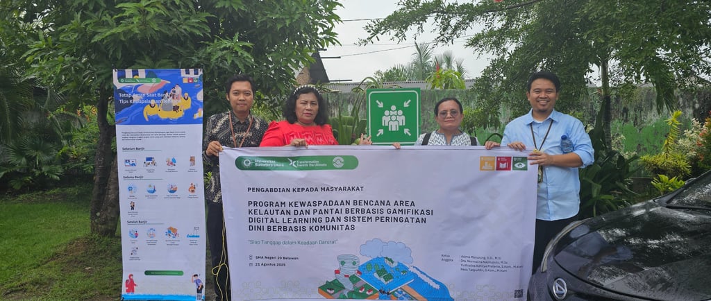 Dalam upaya meningkatkan kesadaran dan kesiapsiagaan terhadap bencana di kalangan generasi muda, Program Studi D3 Teknik Informatika dari Fakultas Vokasi Universitas Sumatera Utara (USU) menyelenggarakan program pengabdian masyarakat yang inovatif. Mengusung tema sosialisasi kesiapsiagaan bencana kelautan dan pantai